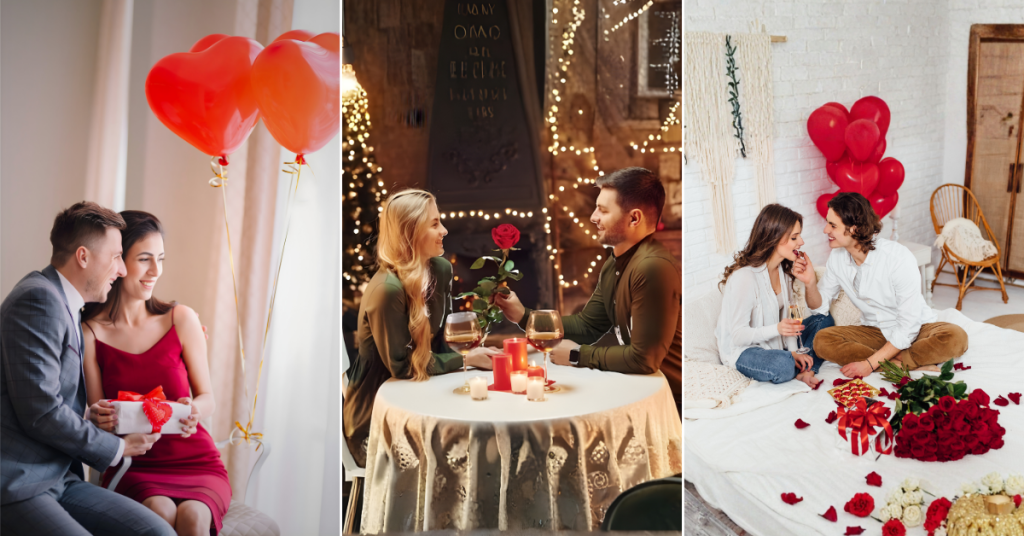 Soft candlelight, rose petals, fairy lights, or a simple themed setup can instantly change the feel of a space. A table set for two makes it feel intentional rather than rushed.