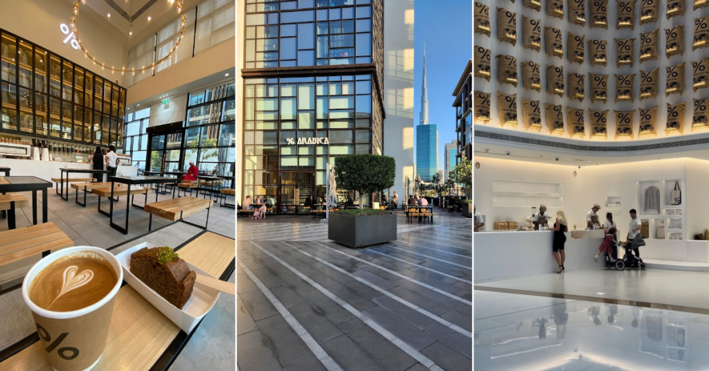 % Arabica, at Dubai Mall and City Walk, offers sleek, modern interiors and a naturally social atmosphere. Perfect for content-creator meetups, coffee-focused events, and casual introductions.
